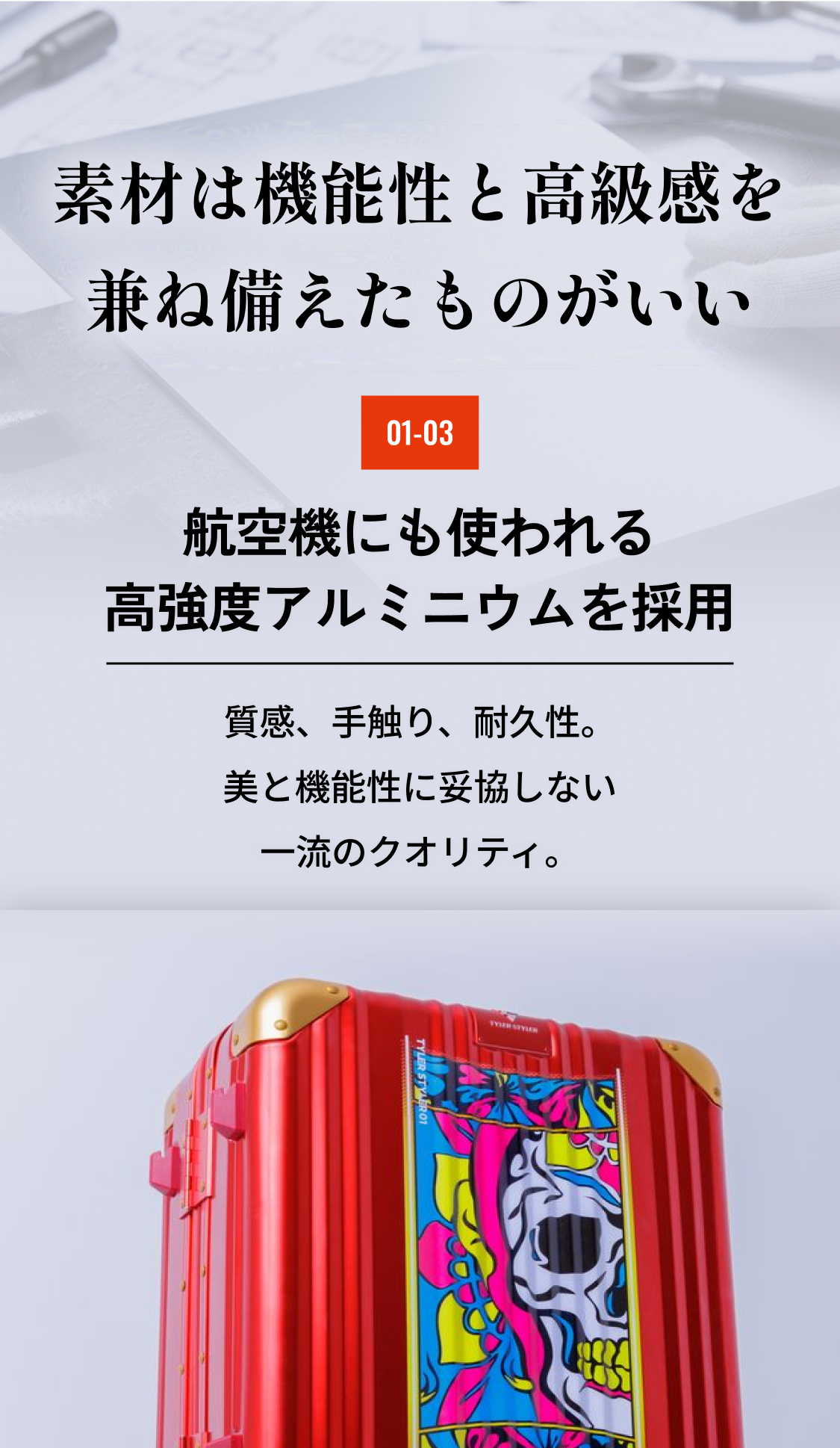 人と被らないスーツケースを探していたので一目ぼれでスカルを購入しました。