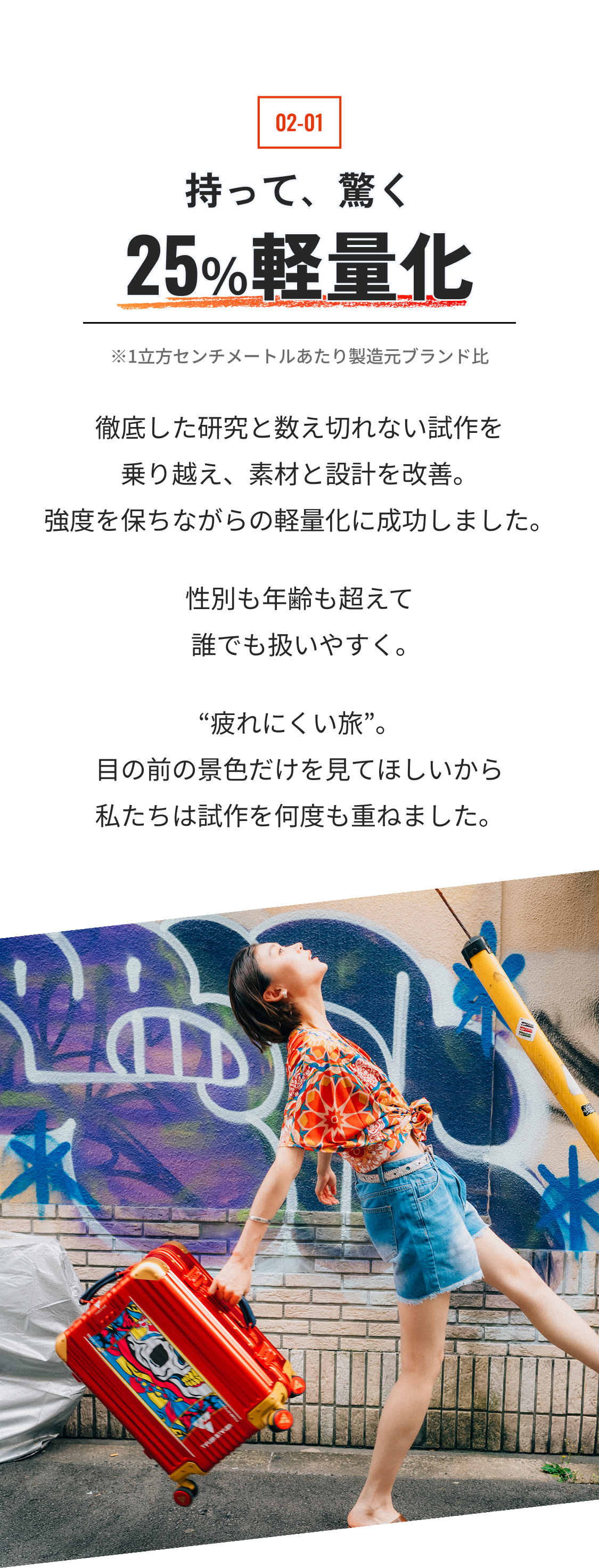 もともと使用していたアルミスーツケースは荷物を入れると重く感じるときがありましたが、これは軽くて使いやすいのでちょっとした外出でもいつも一緒です。